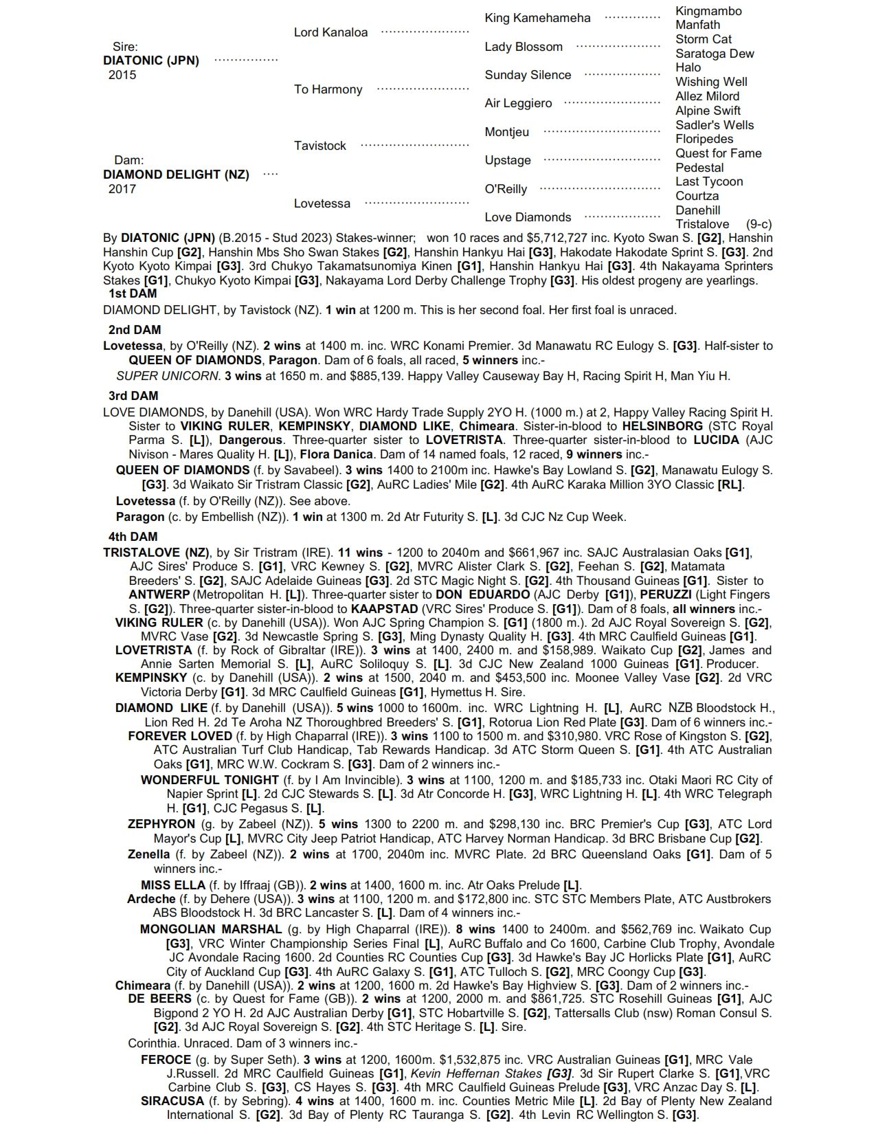 A son of LORD KANALOA (same sire as Group 1 Blue Diamond winning stallion TAGALOA), DIATONIC is bred on the same cross as legendary Japanese mare ALMOND EYE & hails from the direct female line of COSMAH, the dam of HALO & half-sister to NORTHERN DANCER’s dam NATALMA