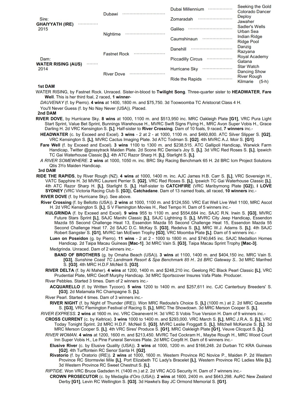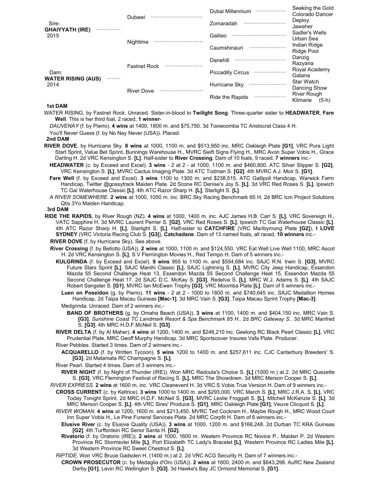 The second dam RIVER DOVE won the G1 Oakleigh Plate before being sold as a broodmare in 2005 for $800,000!