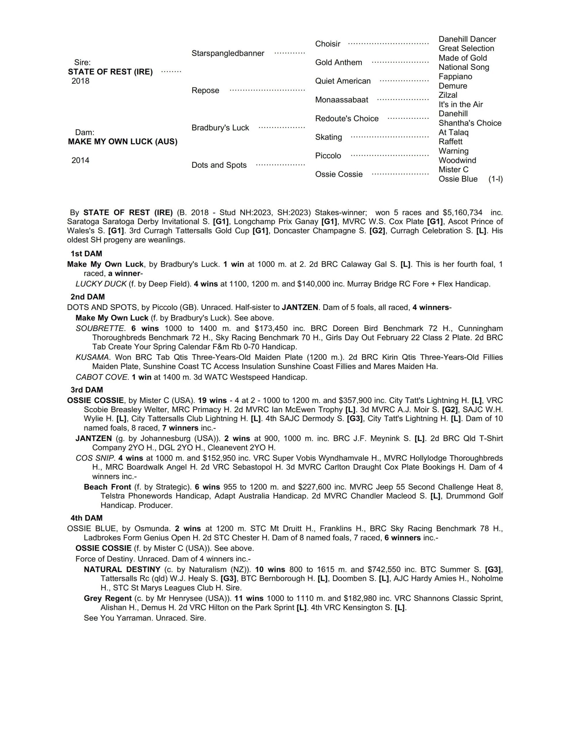 Gorgeous filly by new sire STATE OF REST – the globetrotting conqueror of Group 1 races on 4 different continents including Australasia’s weight-for-age championship & stallion-making showpiece the Cox Plate