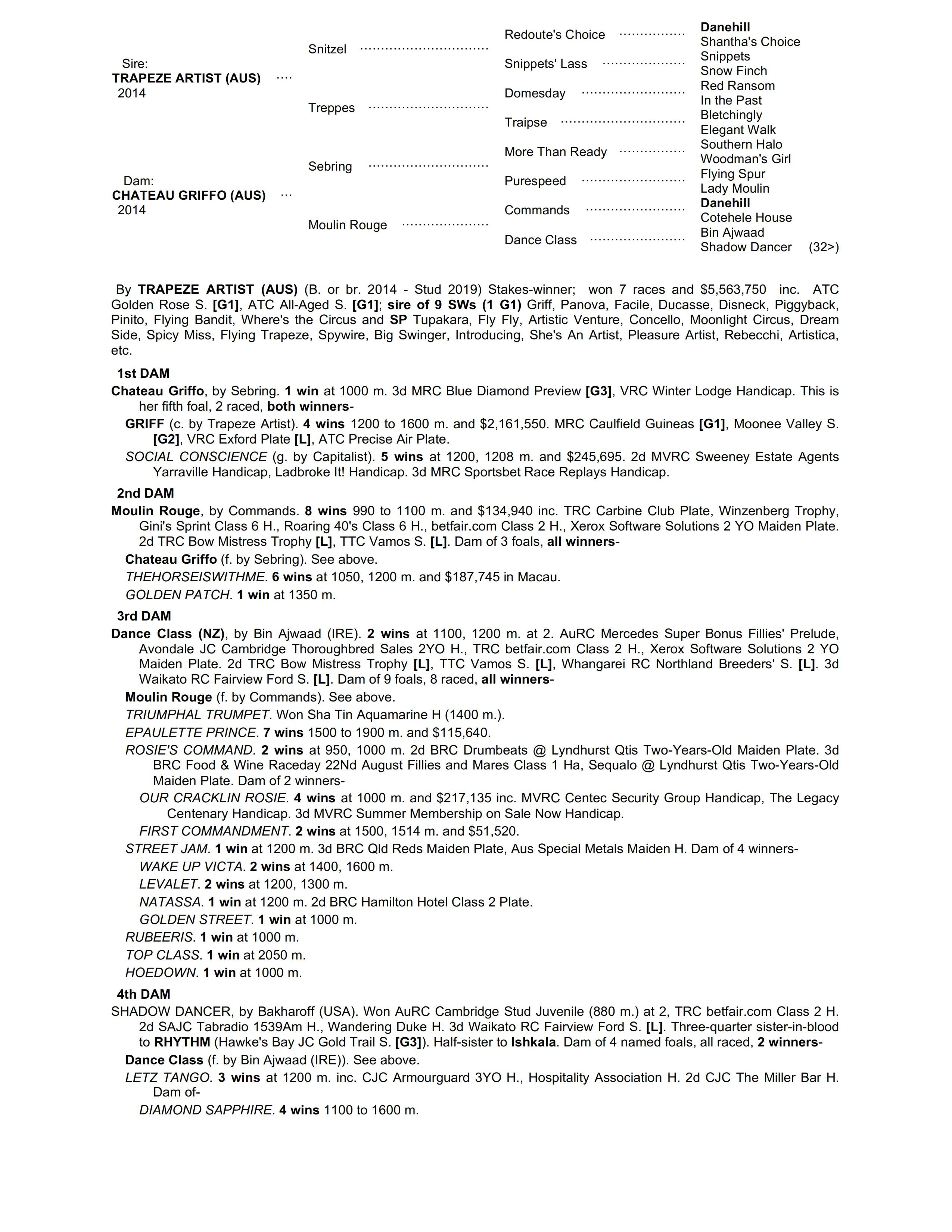Trapeze Artist X Chateau Griffo 1 Year Old Chestnut Colt ProfilePedigreeMediaEnquire Sire: Trapeze Artist Colour: Chestnut Dam: Chateau Griffo Sex: Colt Age: 1 Foaled: Sep 20, 2024 Country: Australia Trainer: Kerry Parker Location:NSW Price:TBA Silks: Incentives: First Name (required) Last Name (required) Your Email (required) Phone Message Hello, I'd like to know more regarding the horse Trapeze Artist X Chateau Griffo you have listed as available. Send Δ