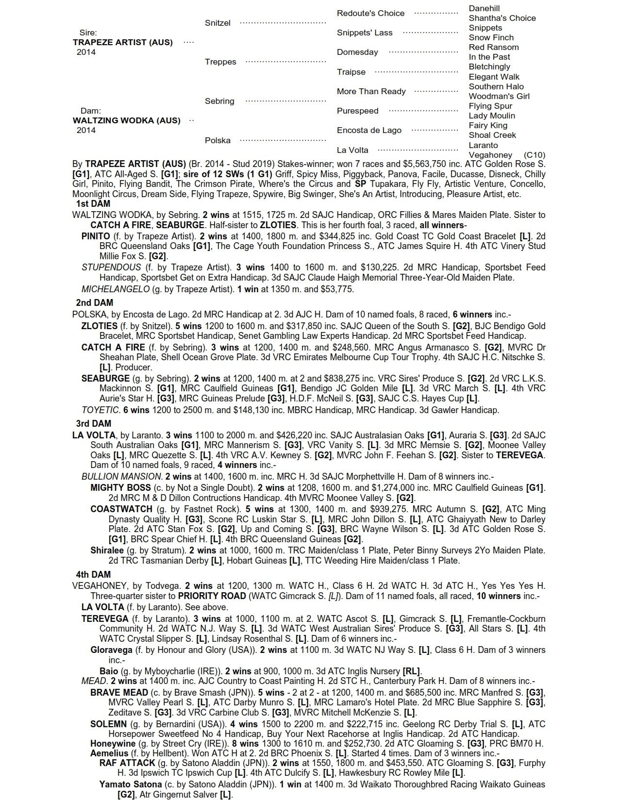 Trapeze Artist X Waltzing Wodka 1 Year Old Chestnut Filly ProfilePedigreeEnquire Sire: Trapeze Artist Colour: Chestnut Dam: Waltzing Wodka Sex: Filly Age: 1 Foaled: Sep 26, 2024 Country: Australia Trainer: Charlotte Littlefield Location:VIC Price:TBA Silks: Incentives: First Name (required) Last Name (required) Your Email (required) Phone Message Hello, I'd like to know more regarding the horse Trapeze Artist X Waltzing Wodka you have listed as available. Send Δ