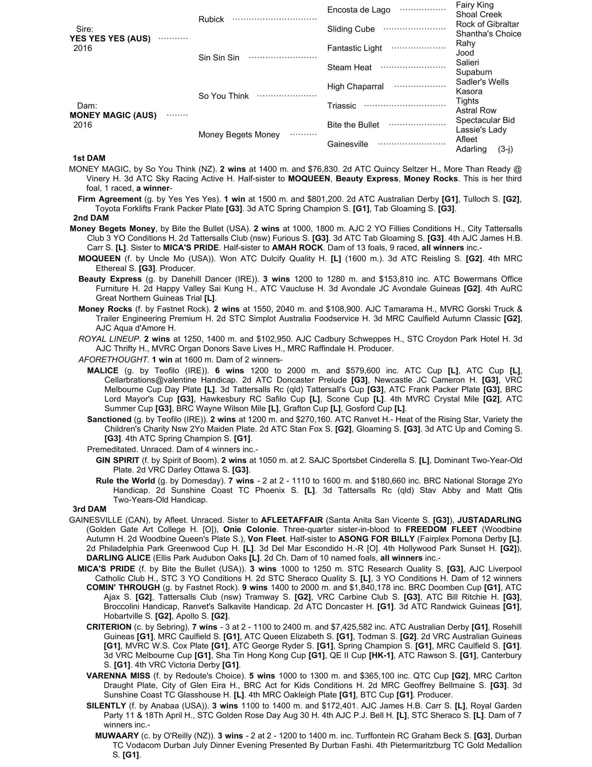 Aside from FIRM AGREEMENT, the only other runner bred on the YES YES YES x SO YOU THINK cross has won 4 & placed twice from 7 starts (WANT A WINNER)