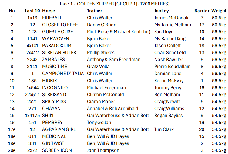 Looking ahead to this Saturday and we have the world’s richest 2YO event, the Golden Slipper.